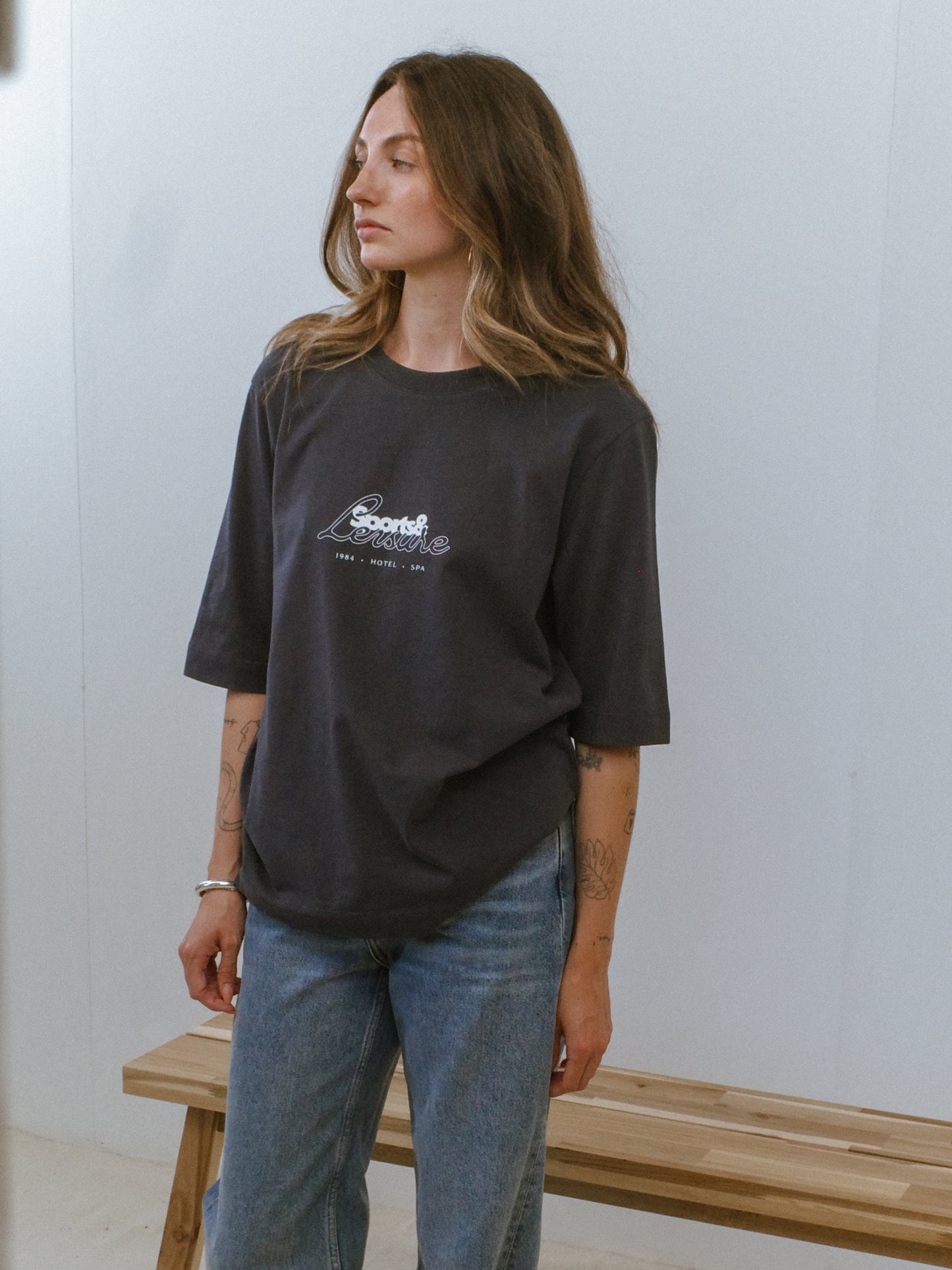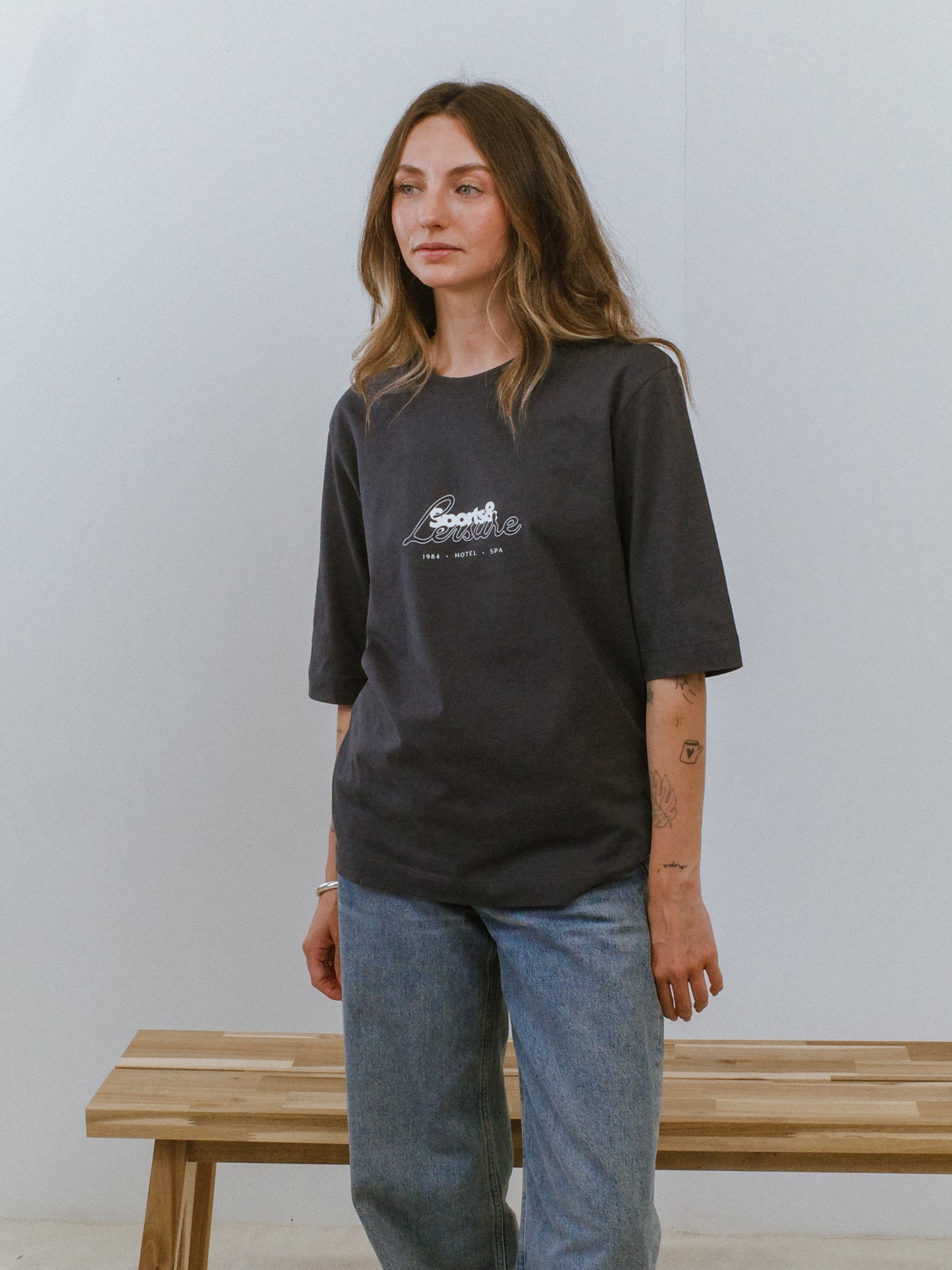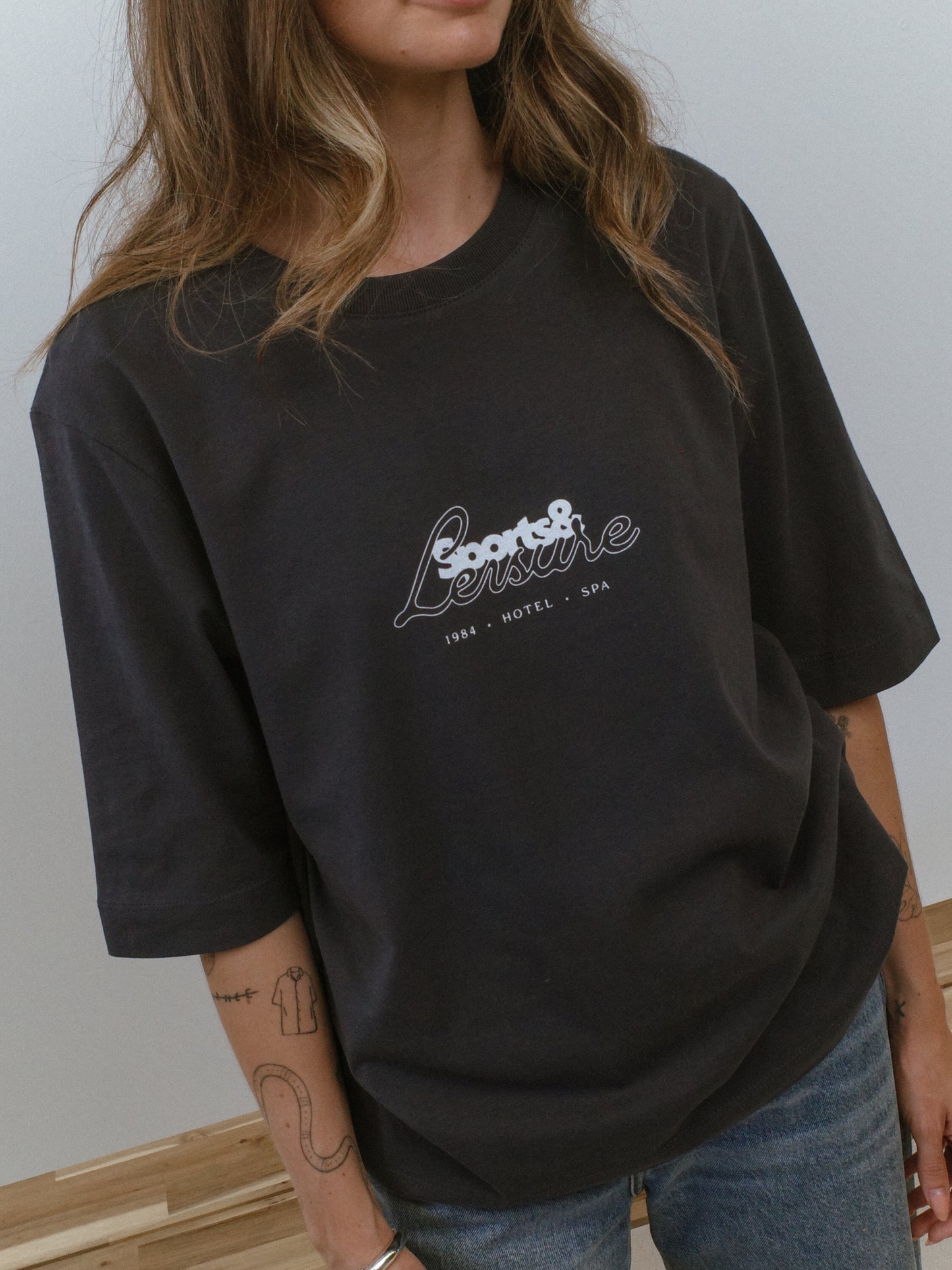 SIZING: BOXY, RELAXED FIT. SIZE UP FOR OVERSIZED. ELBOW-LENGTH SLEEVE.
