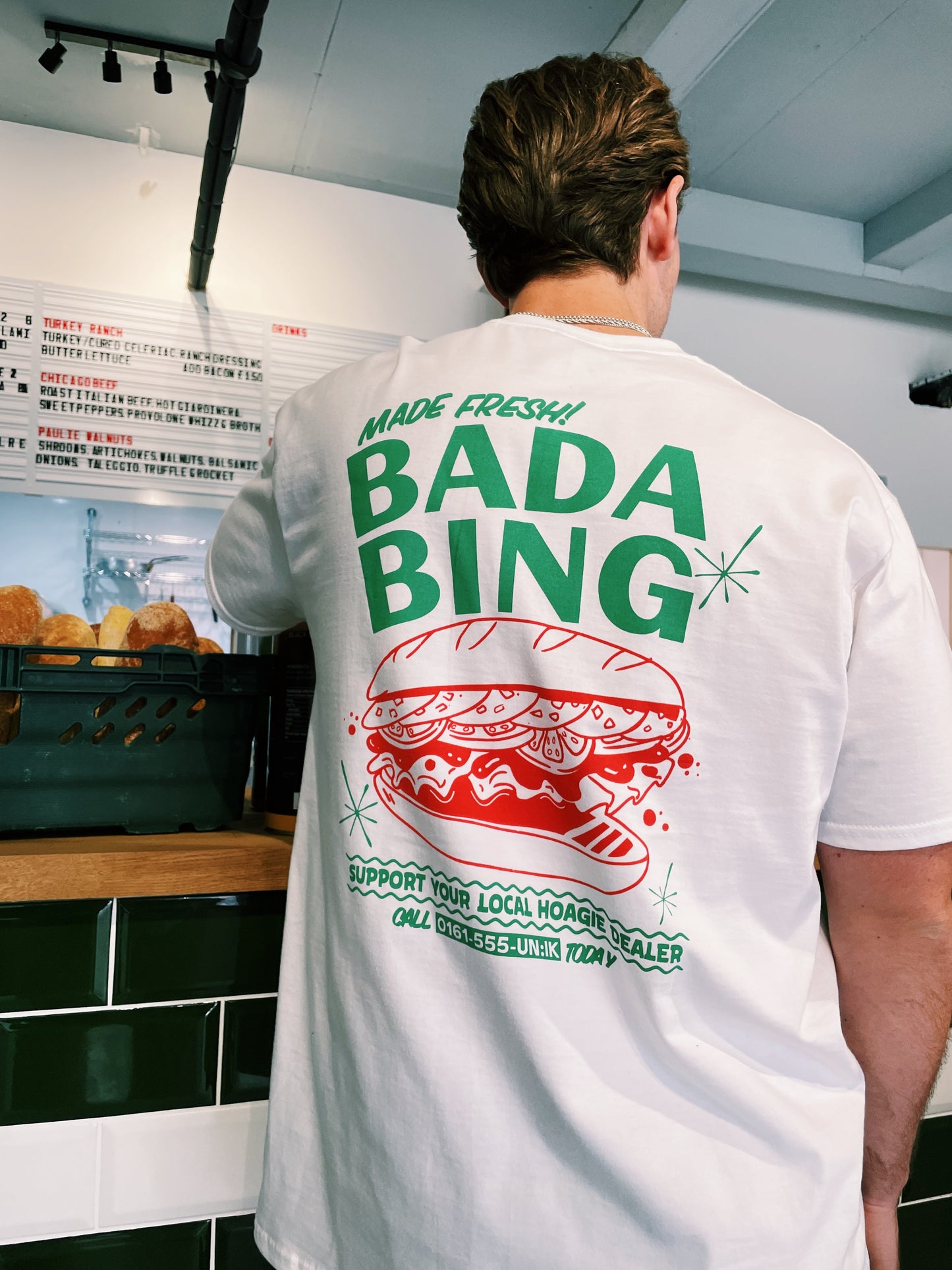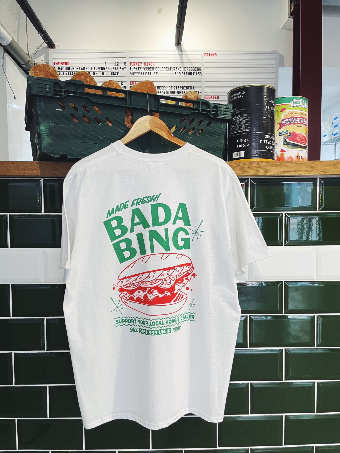 Bada Bing is BADA BACK! Our iconic collaboration with the Manchester masters of the hoagie returns. Inspirations coming from those mobsters in New Jersey. A new series of t-shirts illustrated here in Manchester and sold exclusively for your pleasure.