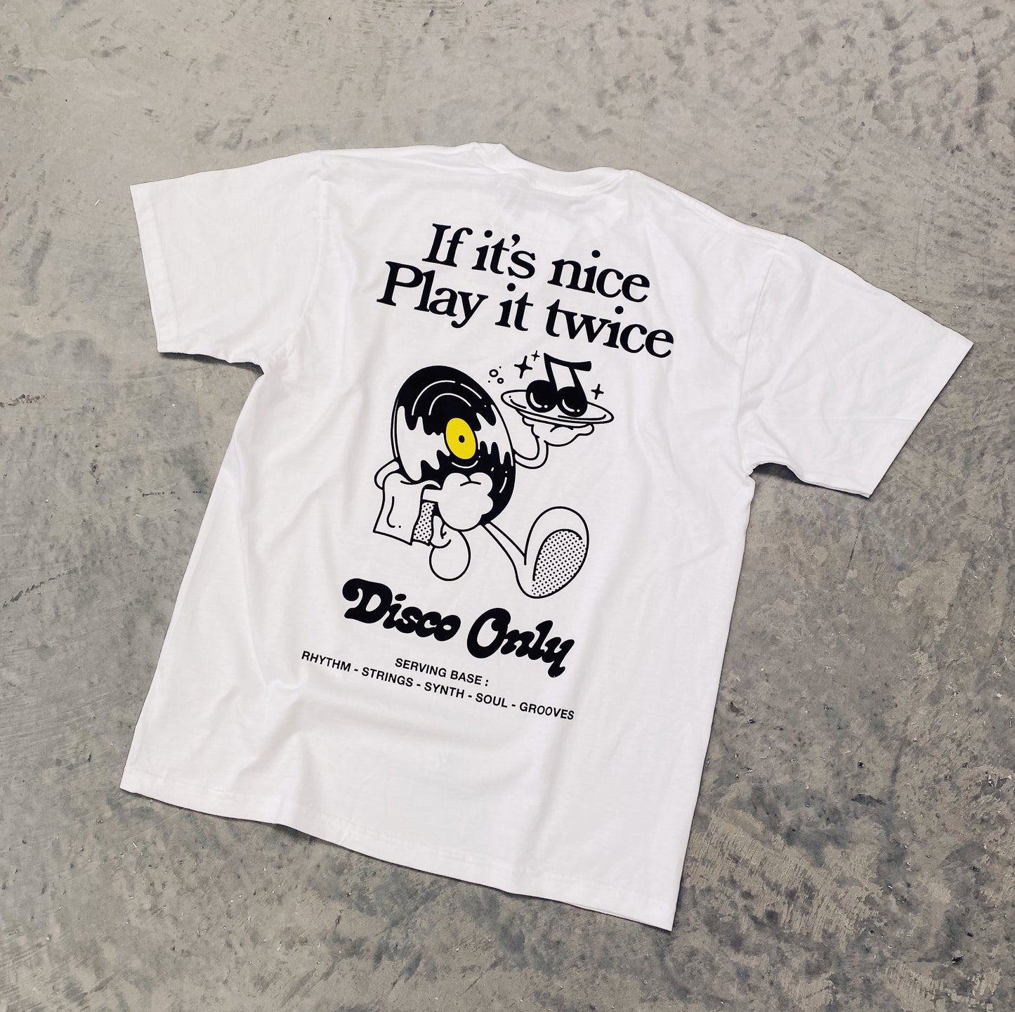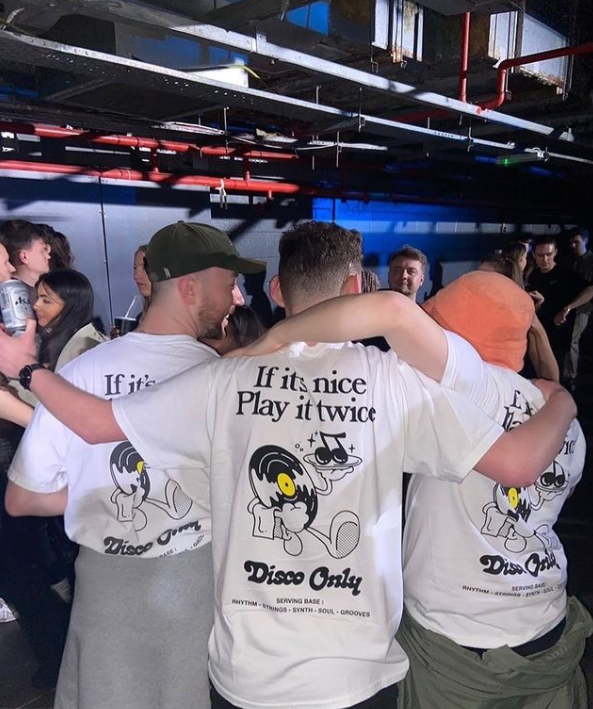 As our feet begin to move again, our hips shake and our voices open. The world begins to resume in a way made for enjoyment. We are dancing again. Together. Our newest instalment of illustrated designs, comes from our 5th young creative worked with on the DISCO ONLY concept since it began. This time we go overseas and work with Opik.