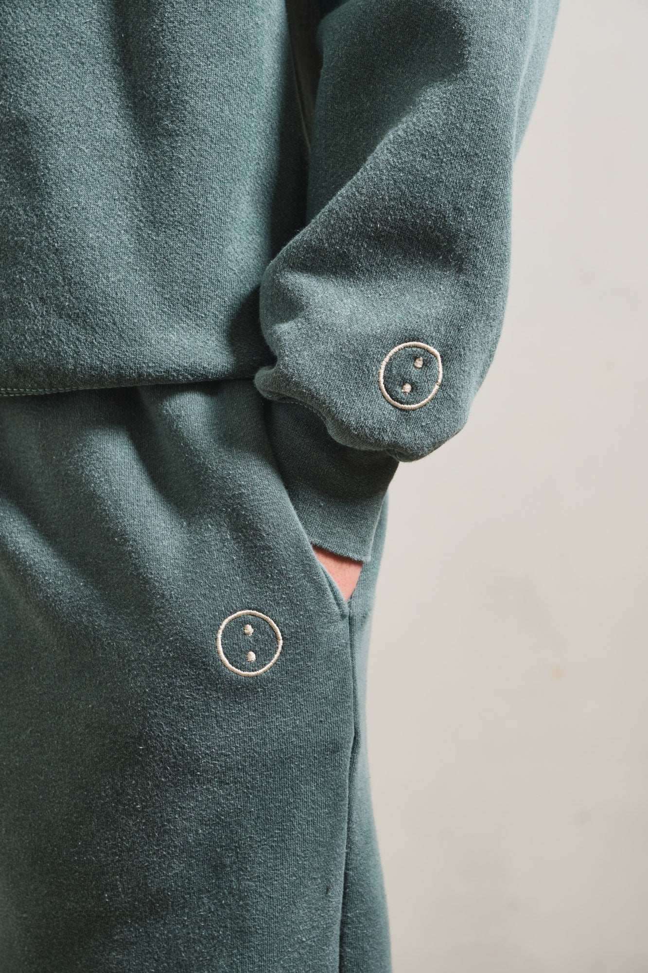 FABRIC (JOGGERS): 70% COTTON 30% POLY, 313GSM, CUSTOM VINTAGE WASH.