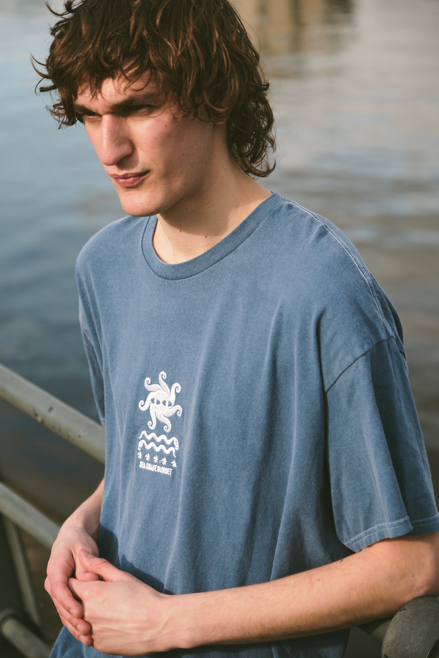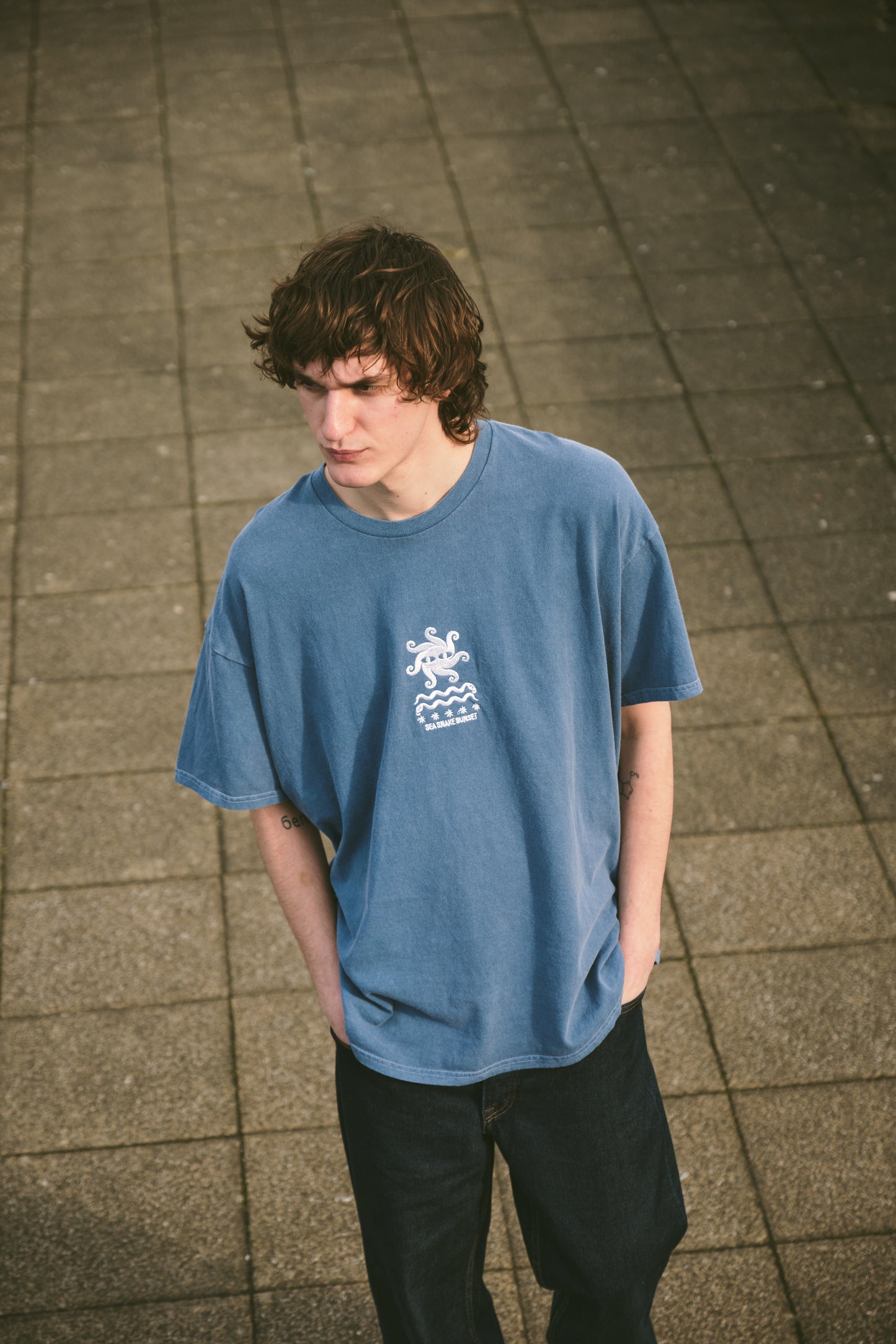 KBAR X UN:IK 'Sea Snake' Vintage Washed Embroidered Tee - Blue
