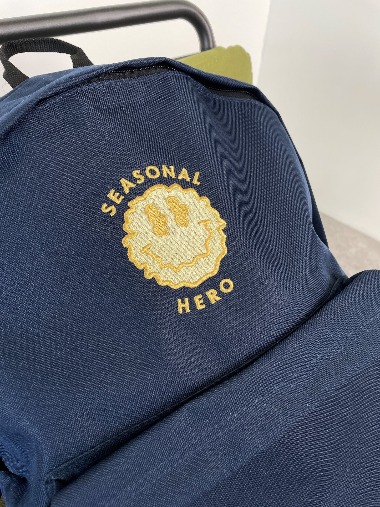 The classic Seasonal Hero trippy smiley embroidery is back! Feel good every day with this casual back pack.