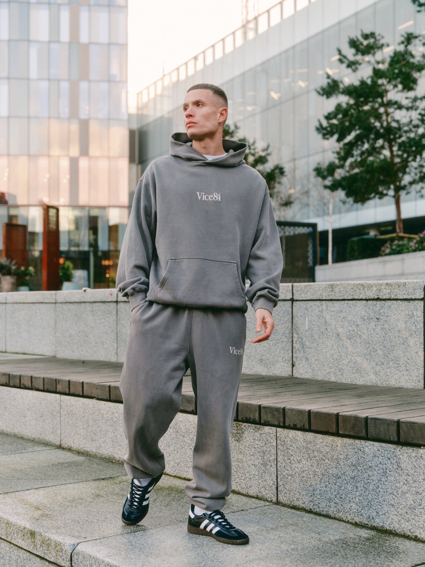 Vice 84 Premium Hoodie & Jogger Set - Faded Grey